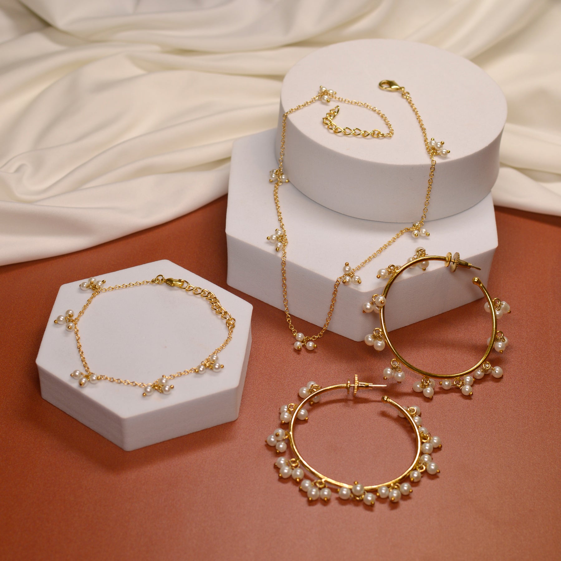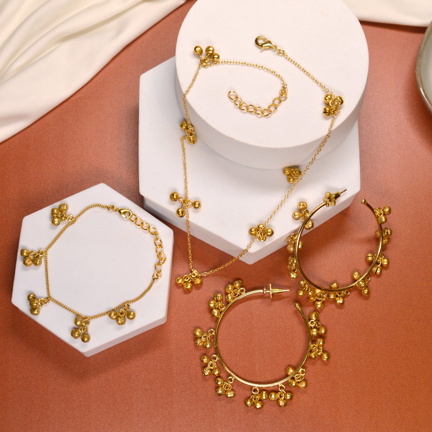 Introducing the Ghungroo Exclusive Set our best-selling Ghungroo Bali Hoops paired with a beautifully coordinated necklace and bracelet. What more could you want?