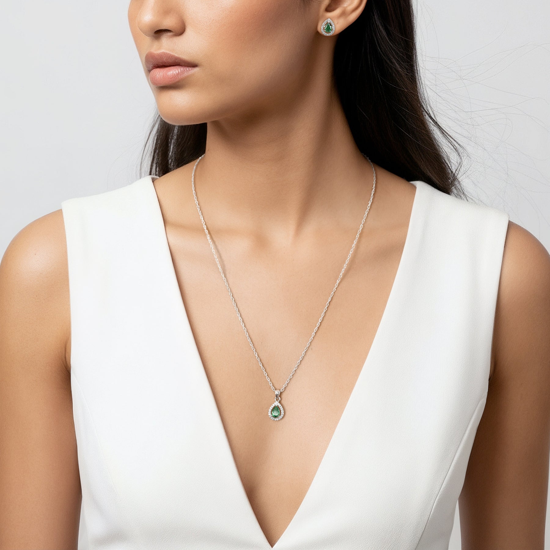 Turn heads with this elegant rectangle-shaped pendant set, featuring a brilliantly cut rectangular American diamond stone. Its clean lines and radiant sparkle create a modern yet timeless look, perfect for adding refined glamour to any outfit.