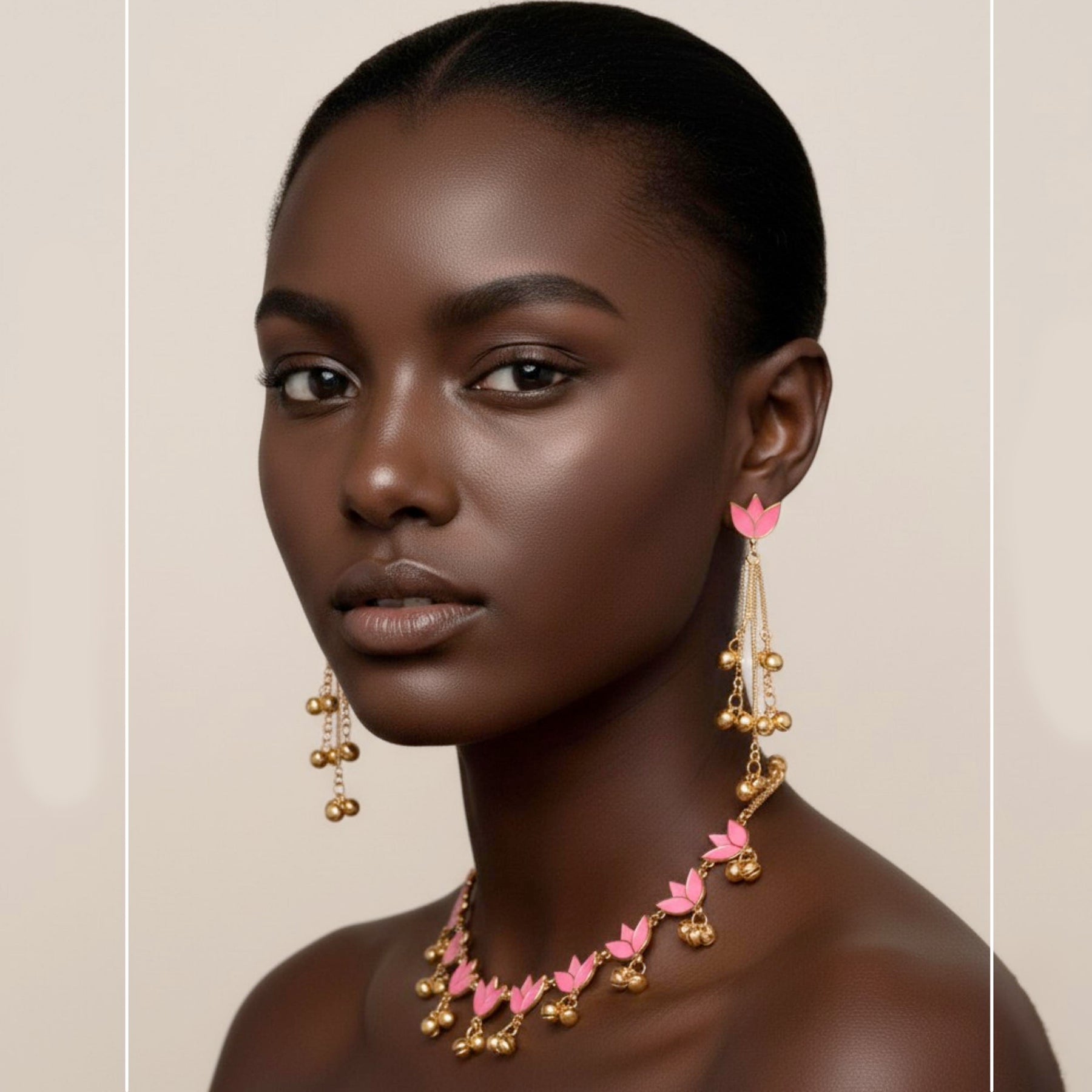 Regular price £32.00 Sale price £22.00Beautiful earrings featuring bright pink hand enamelled lotus with twinkling and happy ghungroos