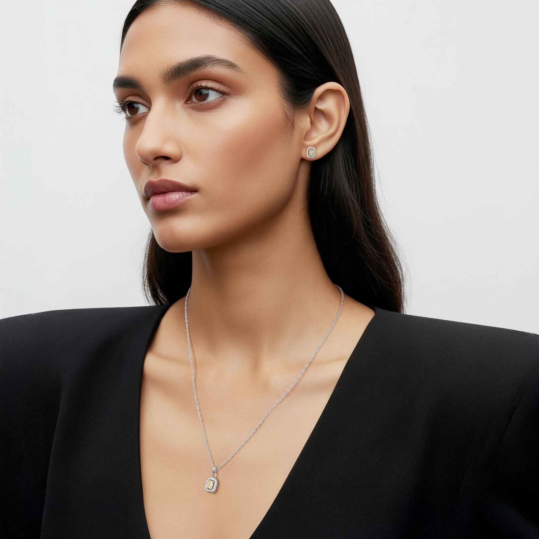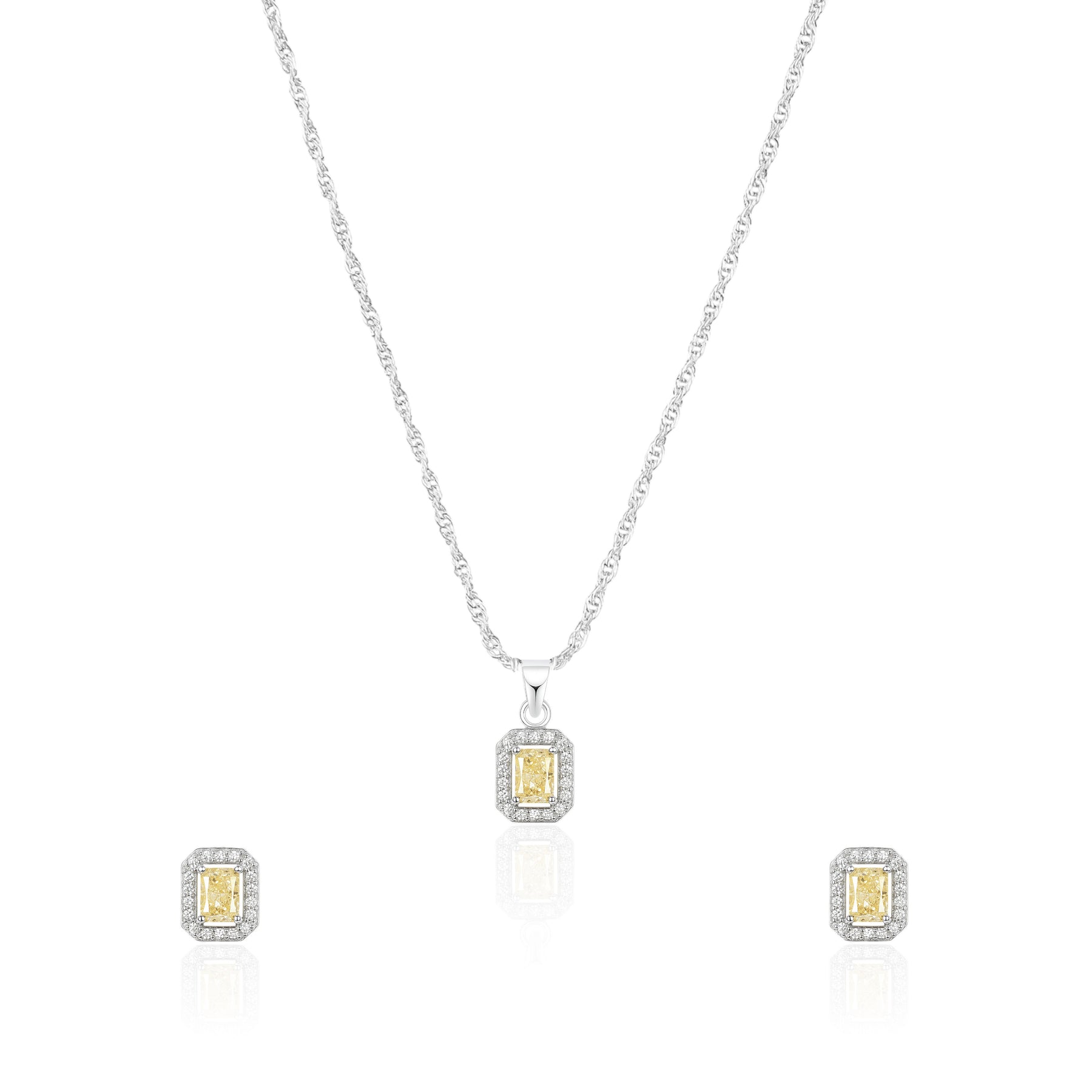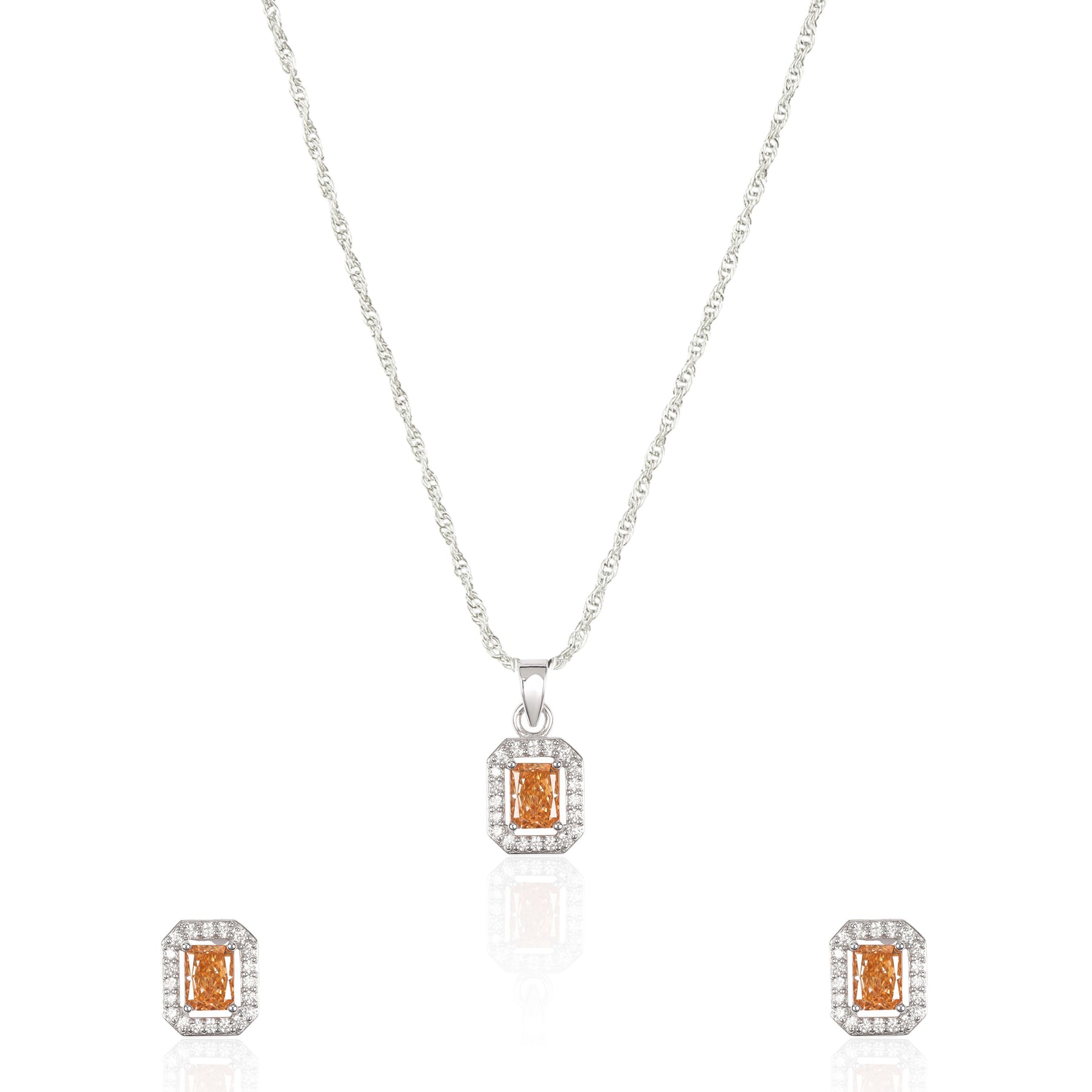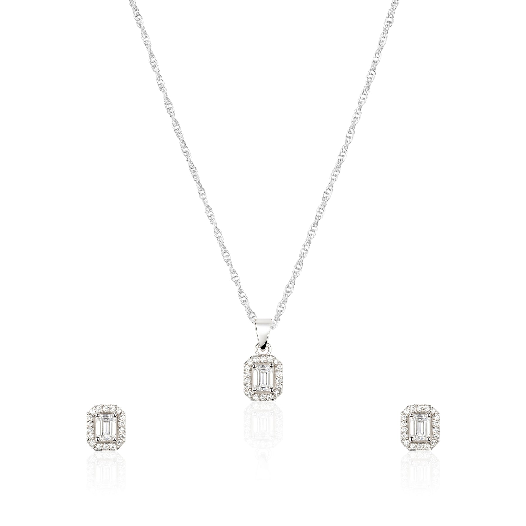 Turn heads with this elegant rectangle-shaped pendant set, featuring a brilliantly cut rectangular American diamond stone. Its clean lines and radiant sparkle create a modern yet timeless look, perfect for adding refined glamour to any outfit.